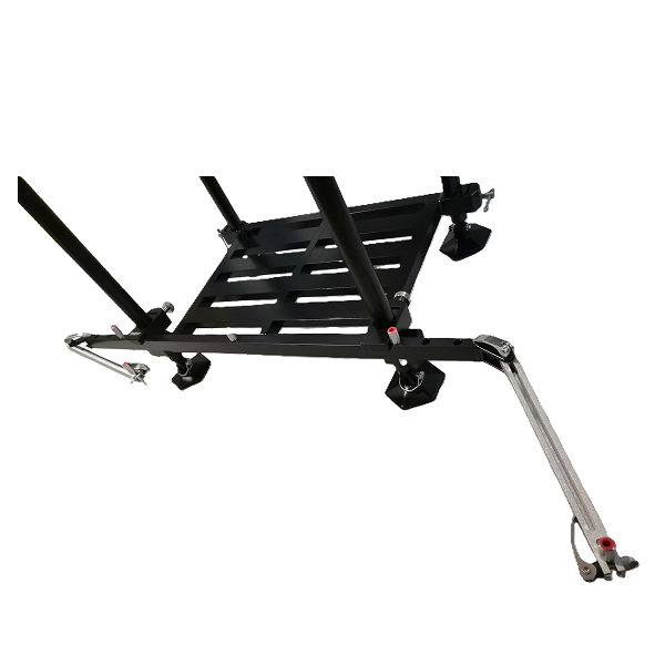 Five fish holders for nets. With sliding holders. For any fishing box. The position of the outer nets can be changed using the two levers. Made of aluminium and stainless steel. Powder coated.