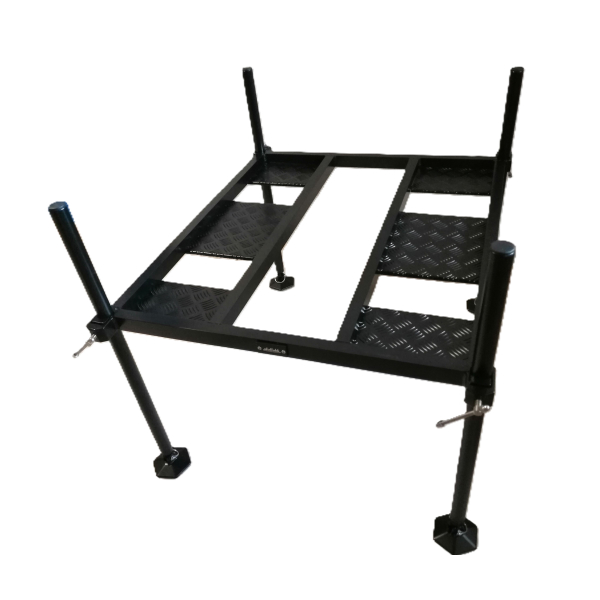 Stabil, nagy felületű horgászplatform.